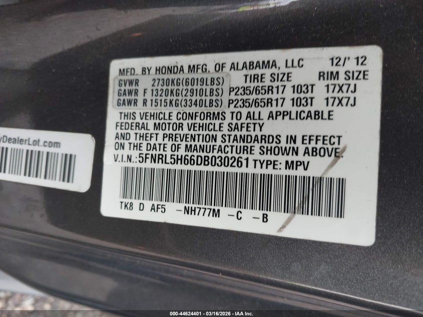 • 5FNRL5H66DB030261
