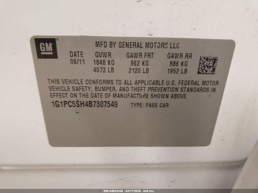 • 1G1PC5SH4B7307549