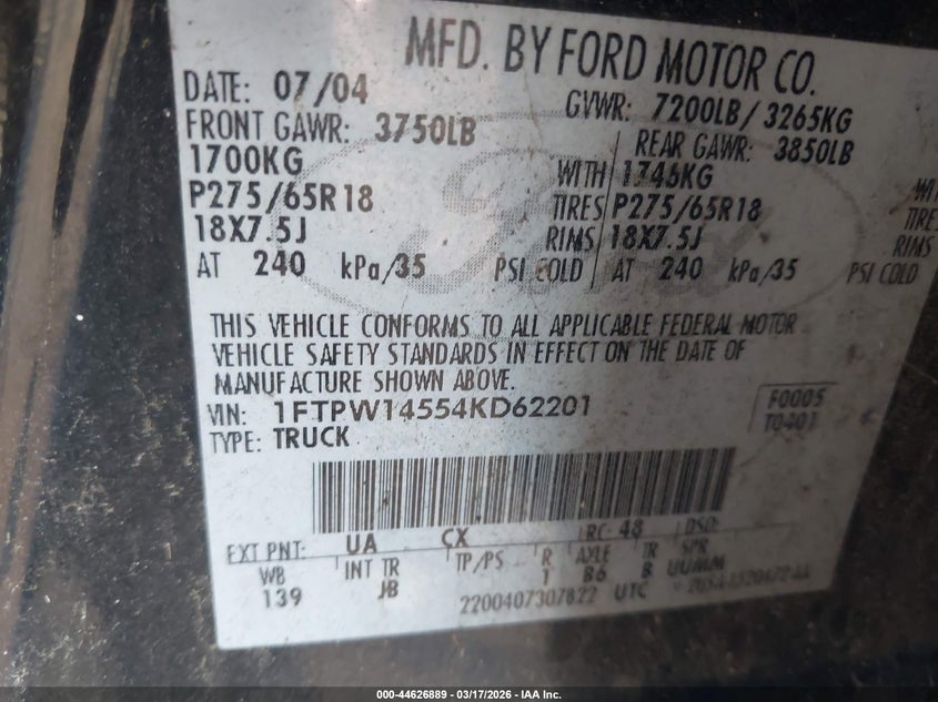 • 1FTPW14554KD62201