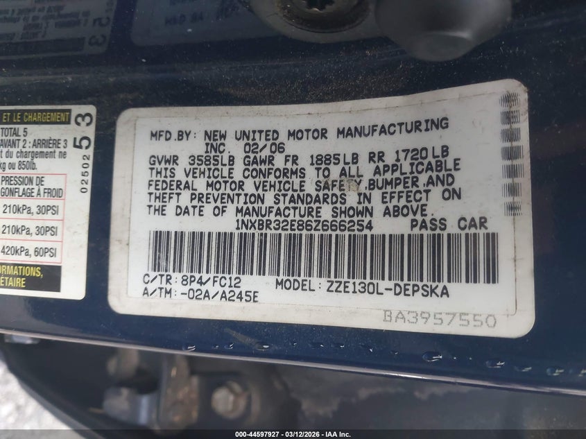 • 1NXBR32E86Z666254