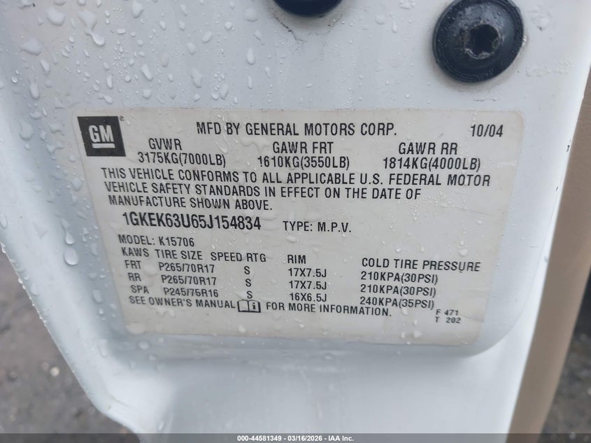 • 1GKEK63U65J154834
