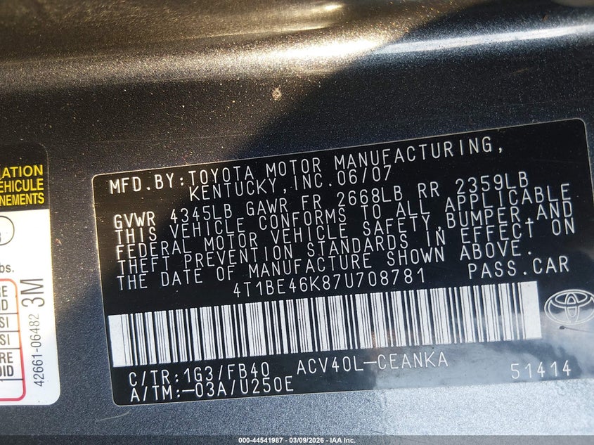 • 4T1BE46K87U708781
