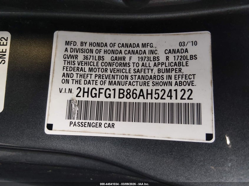 • 2HGFG1B86AH524122