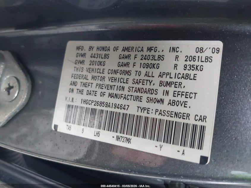 • 1HGCP26859A194647