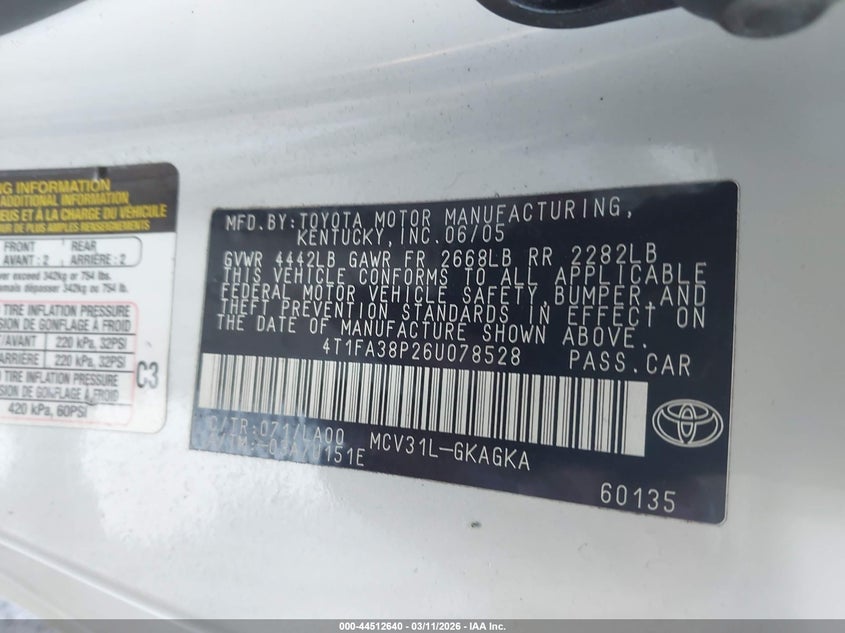 • 4T1FA38P26U078528