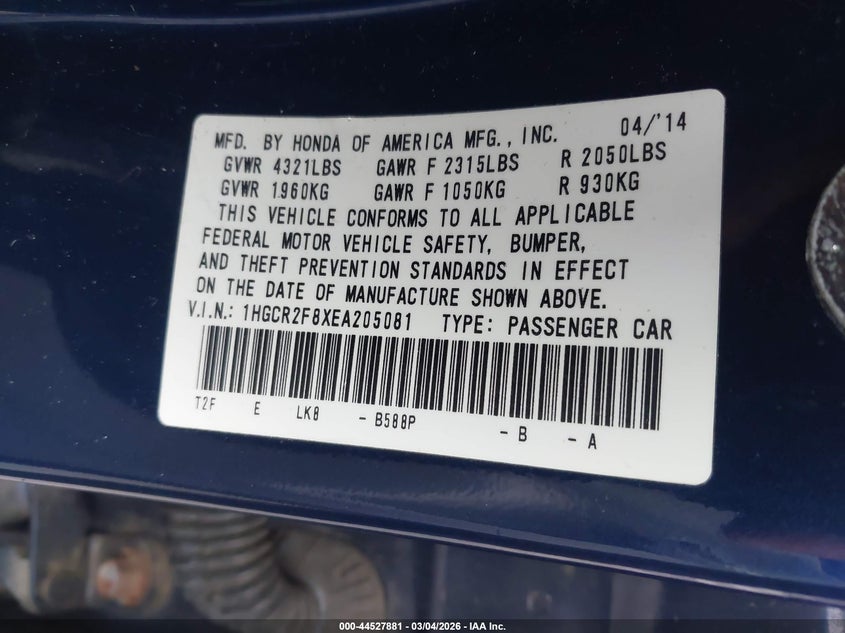 • 1HGCR2F8XEA205081