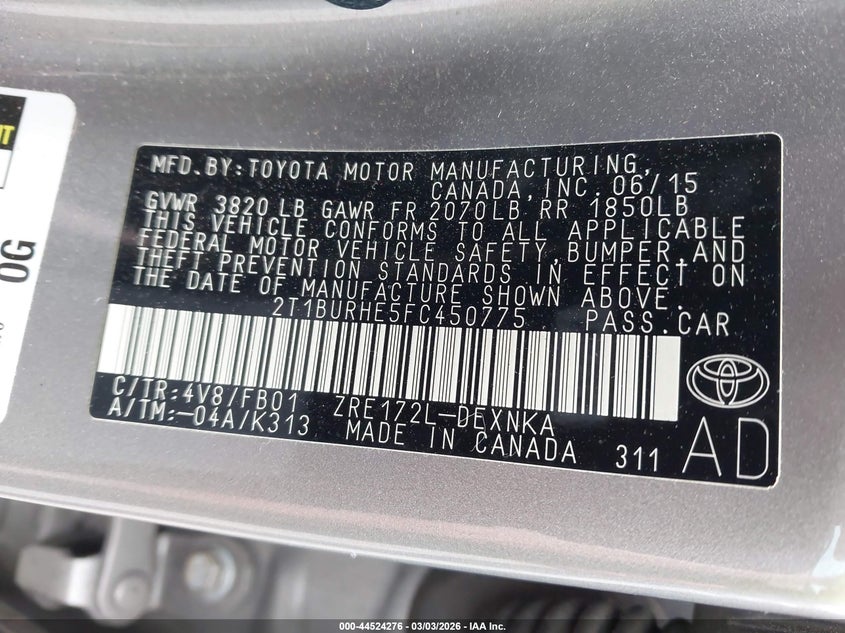 • 2T1BURHE5FC450775