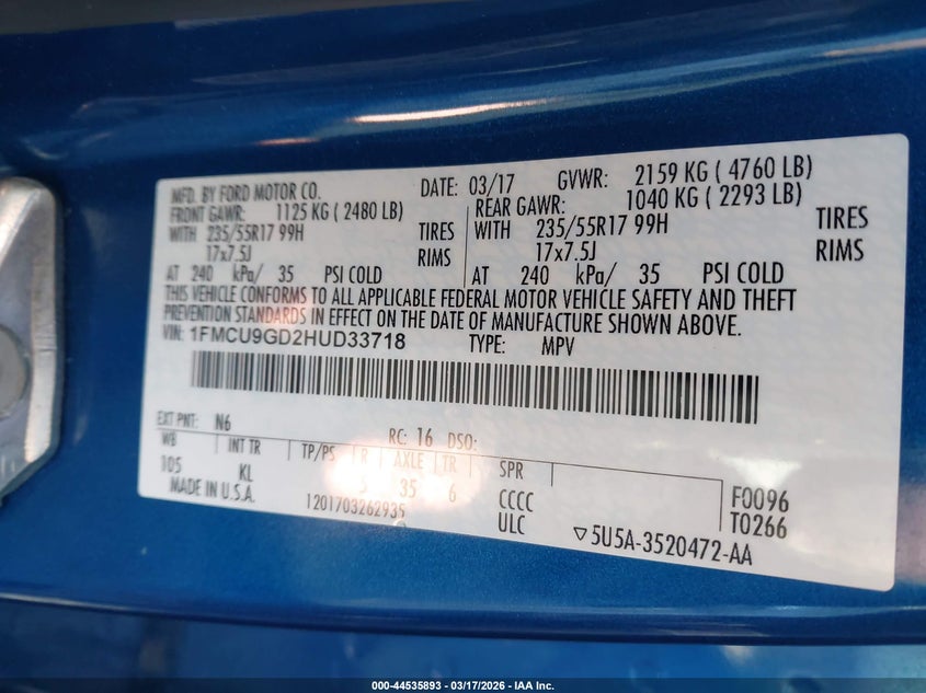 • 1FMCU9GD2HUD33718