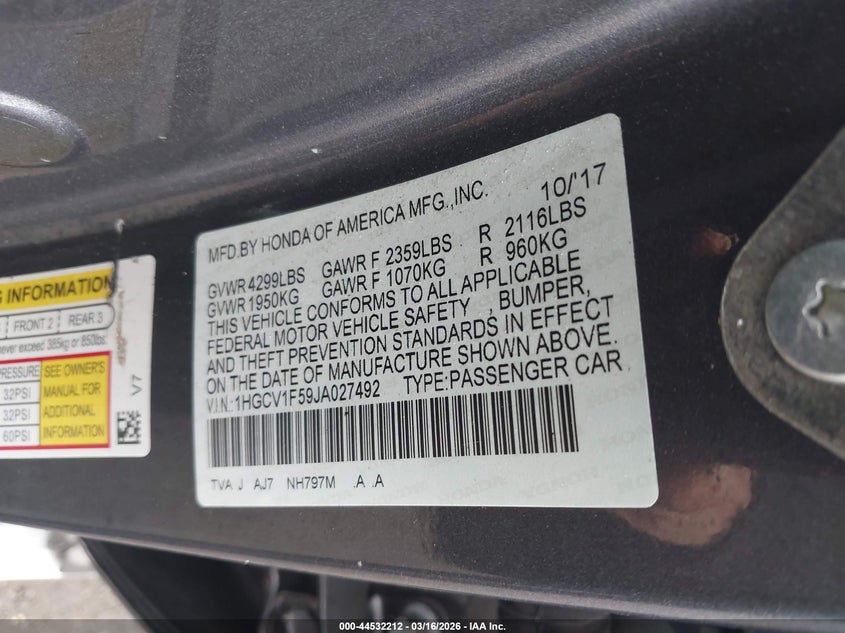 • 1HGCV1F59JA027492