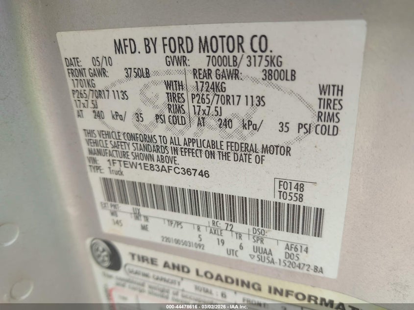 • 1FTEW1E83AFC36746