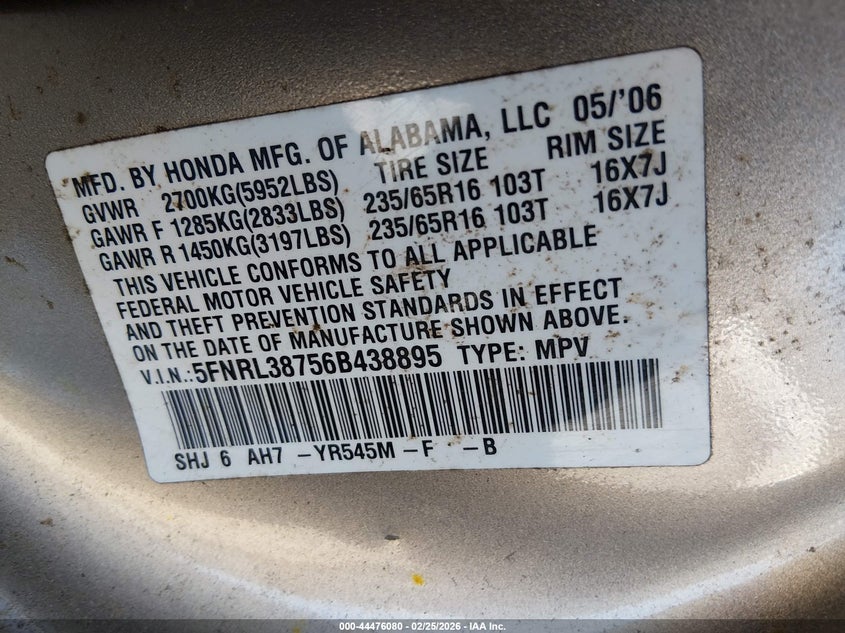 • 5FNRL38756B438895