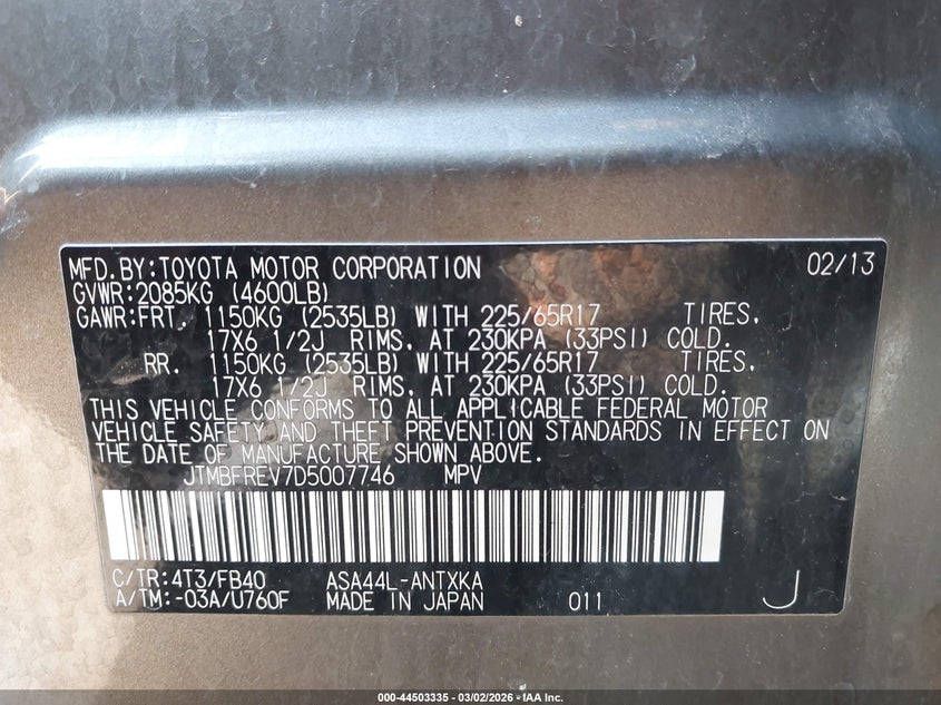 • JTMBFREV7D5007746