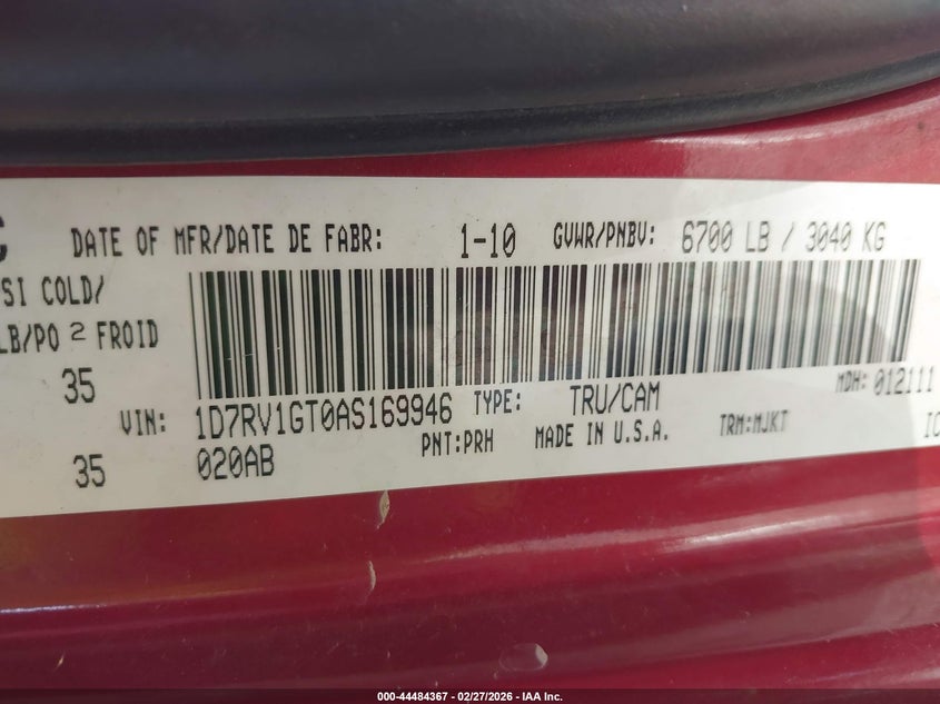 • 1D7RV1GT0AS169946