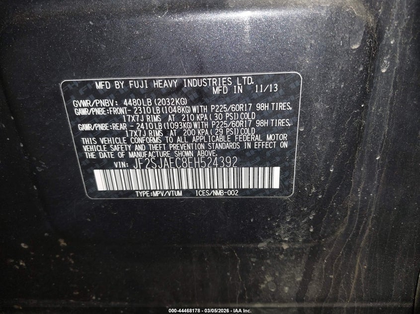 • JF2SJAEC8EH524392