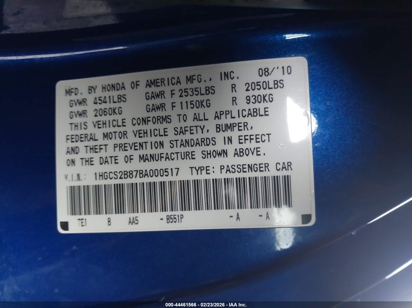 • 1HGCS2B87BA000517