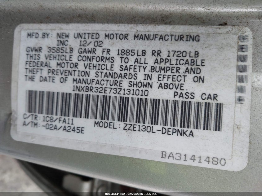 • 1NXBR32E73Z131010