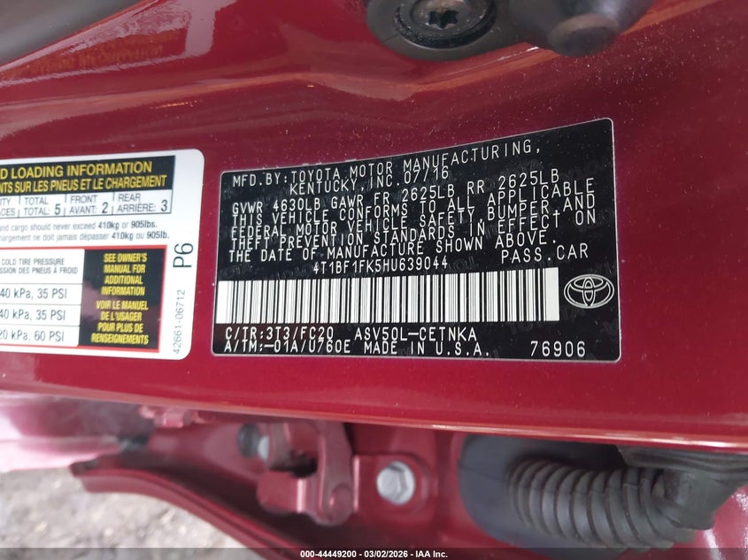 • 4T1BF1FK5HU639044
