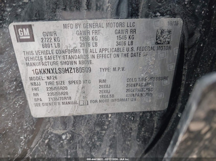 • 1GKKNXLS9HZ180509