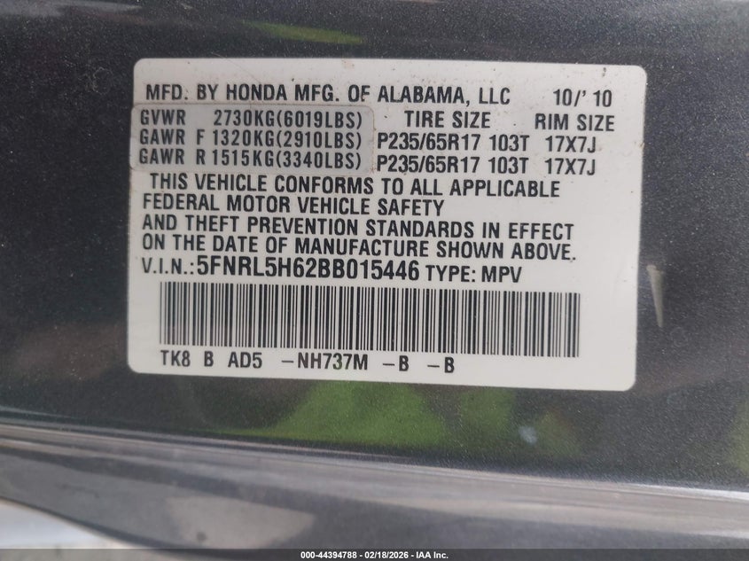 • 5FNRL5H62BB015446