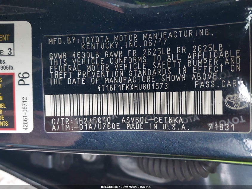 • 4T1BF1FKXHU801573
