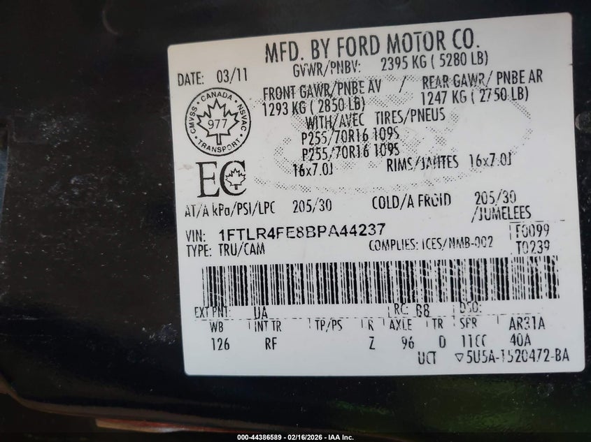 • 1FTLR4FE8BPA44237