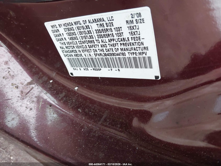 • 5FNRL38408B044780