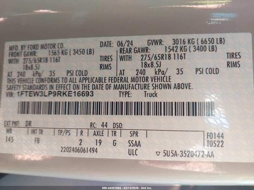 • 1FTEW3LP9RKE16693
