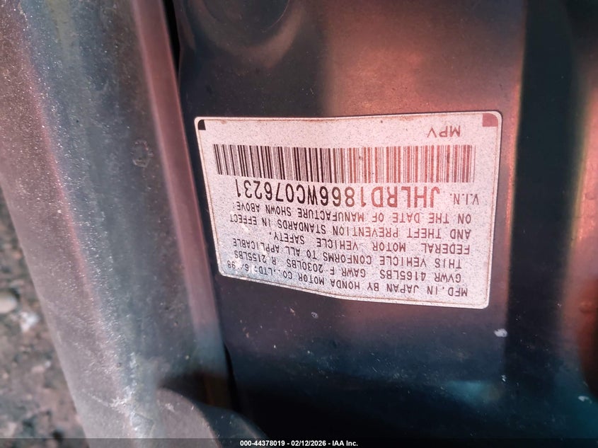 • JHLRD1866WC076231