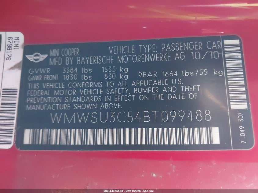 • WMWSU3C54BT099488