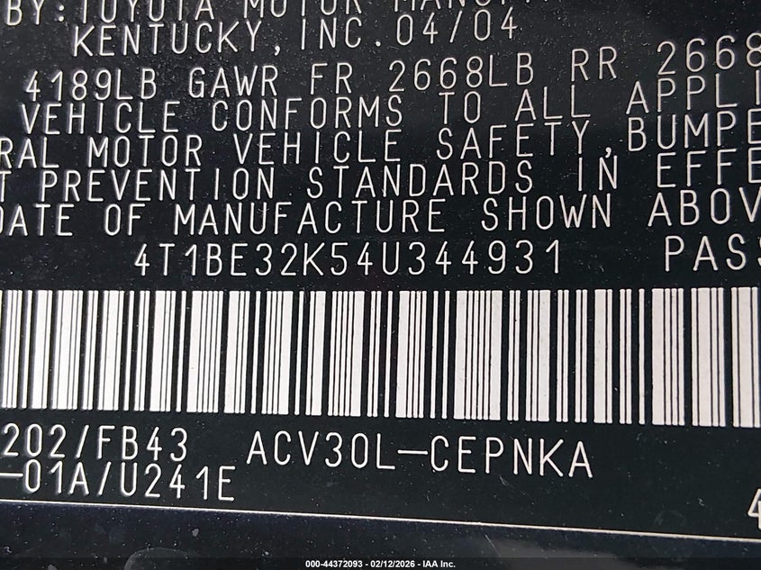 • 4T1BE32K54U344931