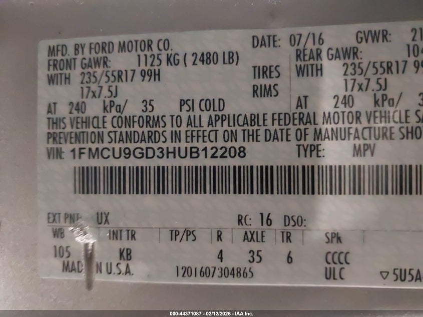 • 1FMCU9GD3HUB12208