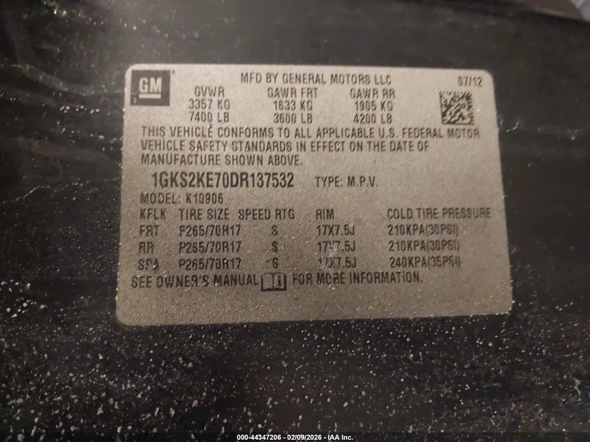 • 1GKS2KE70DR137532