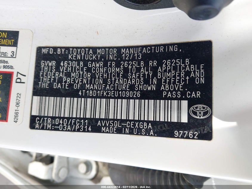 • 4T1BD1FK3EU109026
