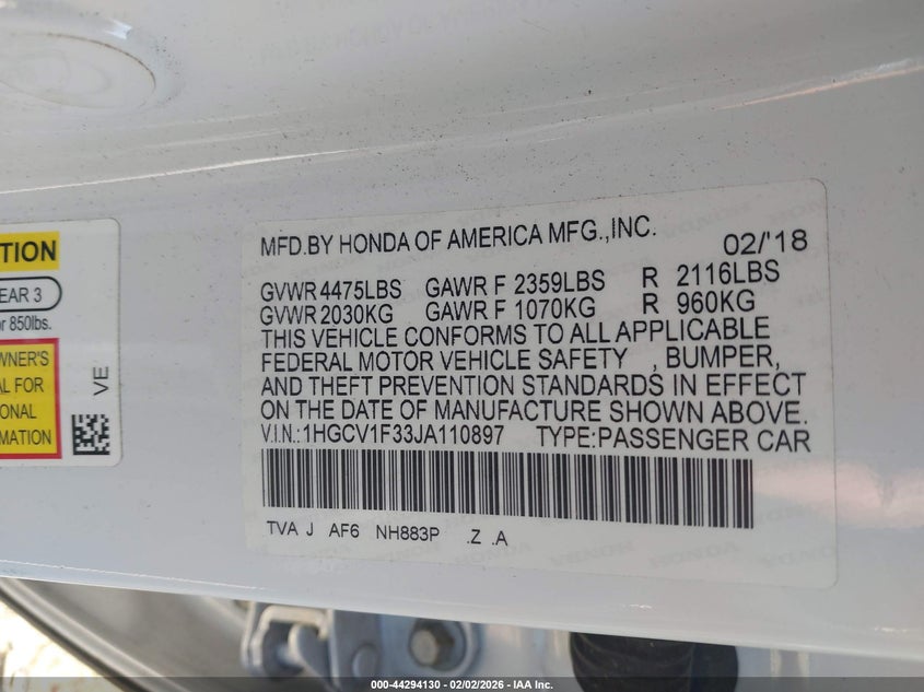 • 1HGCV1F33JA110897