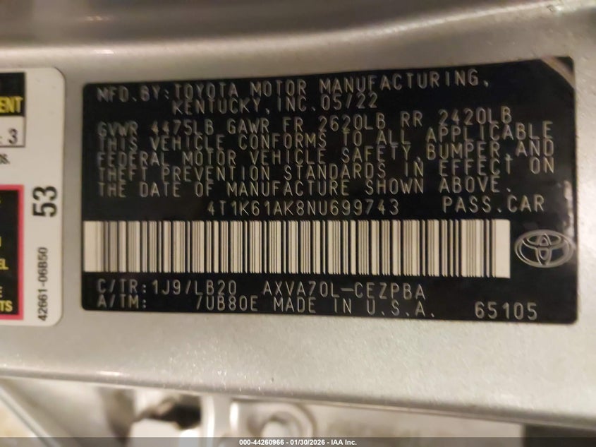• 4T1K61AK8NU699743