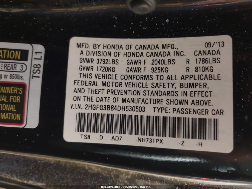 • 2HGFG3B84DH530503