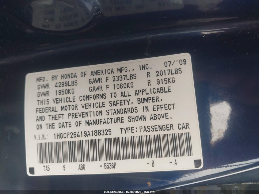 • 1HGCP26419A188325