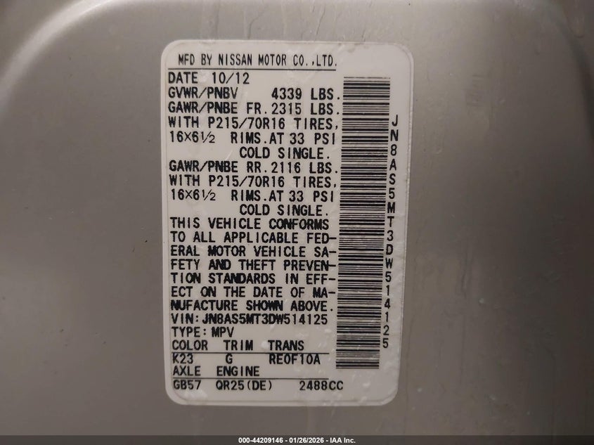 • JN8AS5MT3DW514125