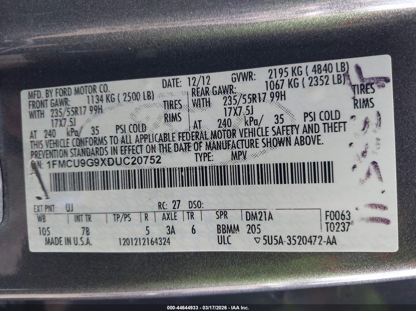 • 1FMCU9G9XDUC20752