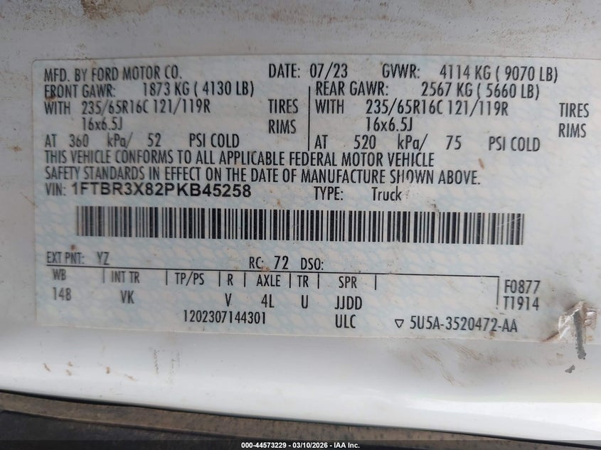 • 1FTBR3X82PKB45258