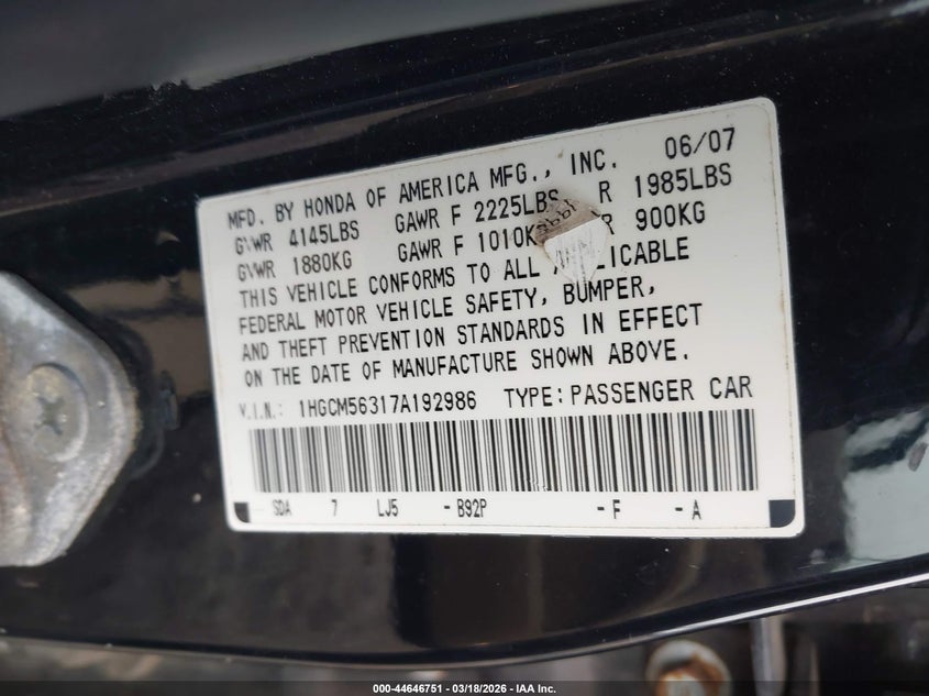 • 1HGCM56317A192986