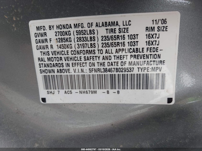 • 5FNRL38467B029537