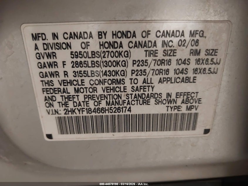 • 2HKYF18466H526174