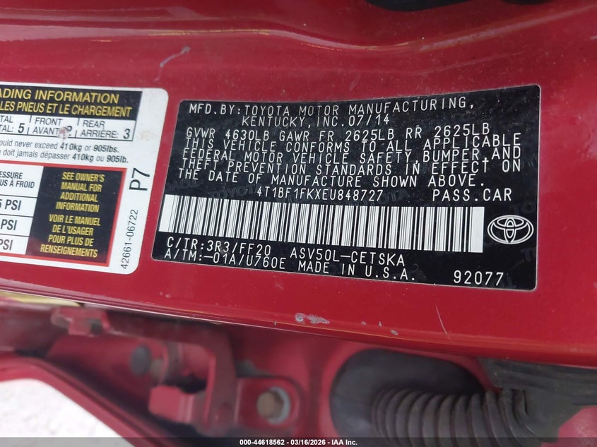 • 4T1BF1FKXEU848727