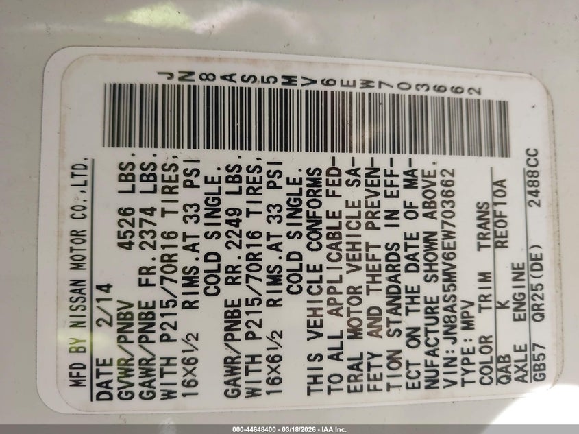 • JN8AS5MV6EW703662