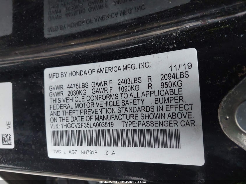 • 1HGCV2F35LA003519