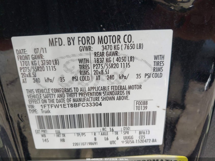 • 1FTFW1ET8BFC33304