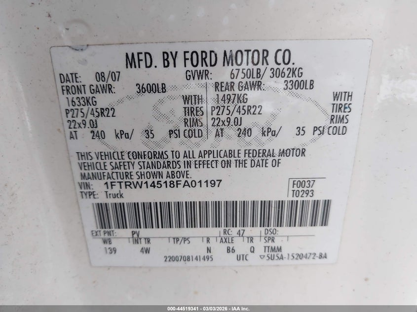 • 1FTRW14518FA01197