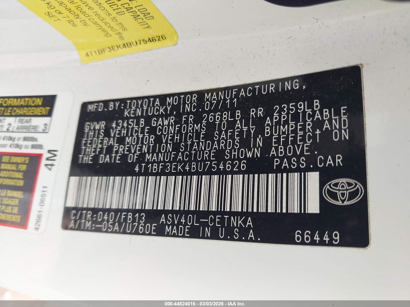 • 4T1BF3EK4BU754626