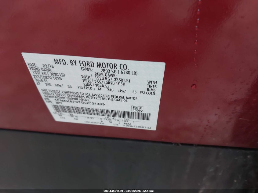• 1FM5K8F87GGC21409